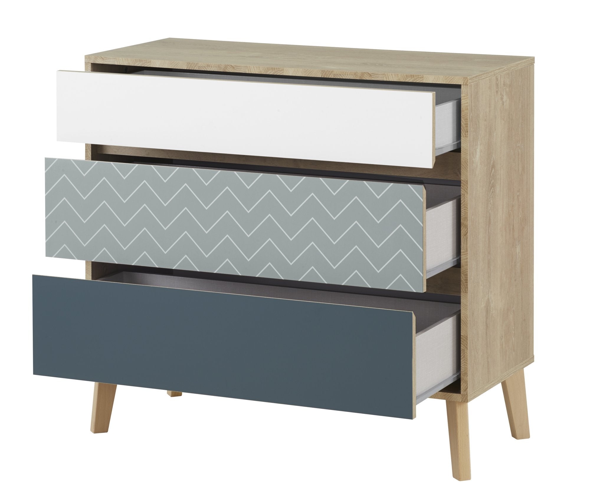 Découvrez la commode LARVIK de la marque Gami, une pièce élégante et fonctionnelle pour votre intérieur. Cette commode à trois tiroirs se distingue par son design scandinave et ses façades colorées qui apportent une touche de modernité à votre espace.