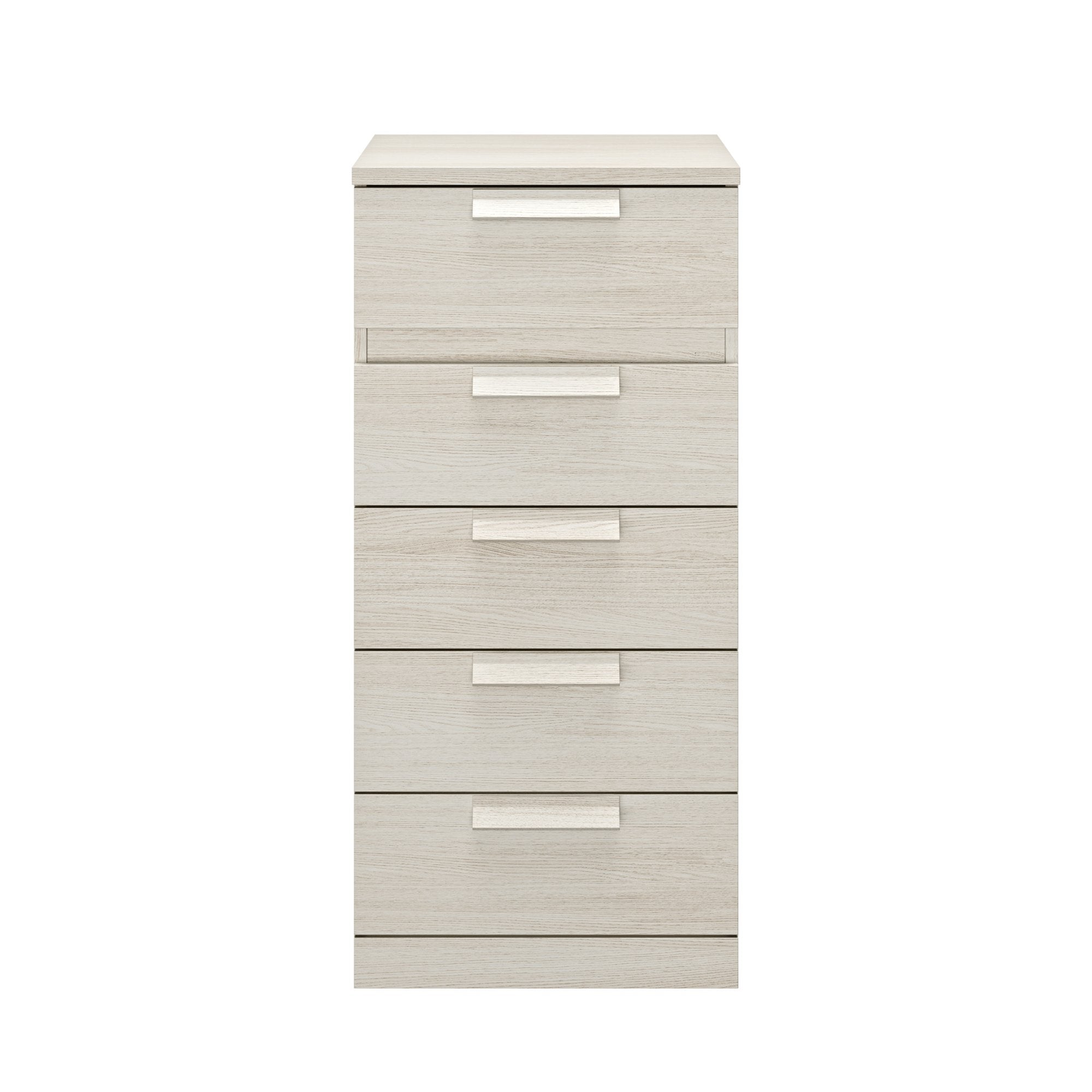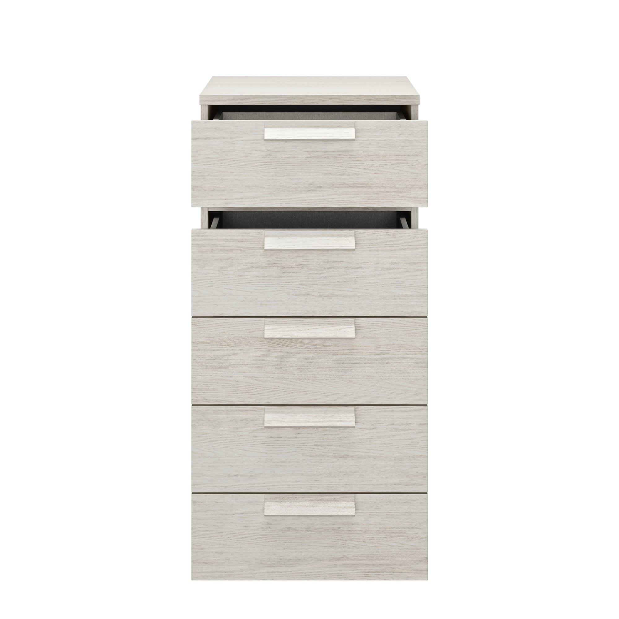 Découvrez le chiffonnier CYRUS de la marque Gami, un meuble élégant et fonctionnel qui s'intègre parfaitement dans votre intérieur. Avec sa finition en frêne blanchi, ce chiffonnier à 5 tiroirs offre une solution de rangement optimale tout en ajoutant une touche de modernité à votre espace.