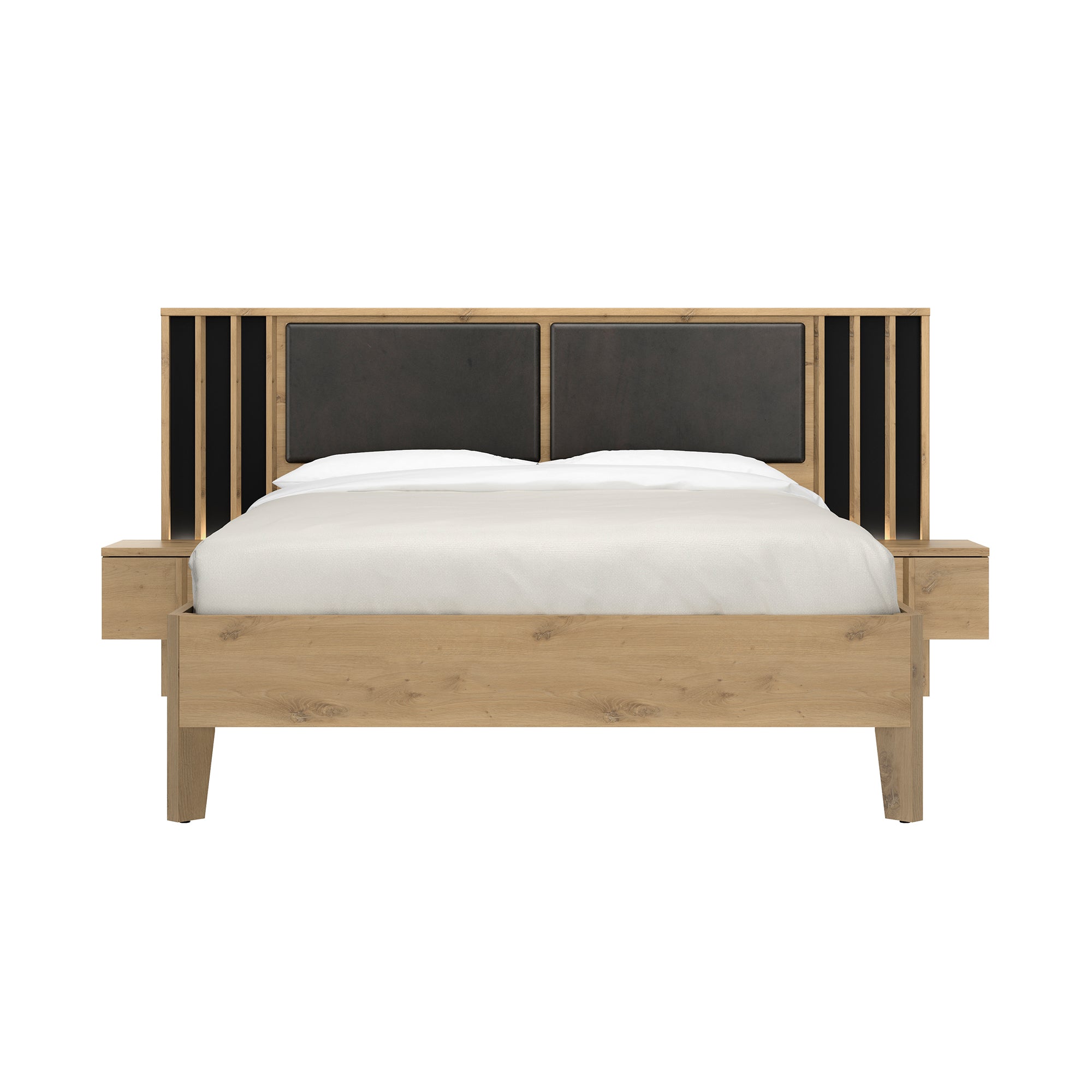 - Deux chevets avec tiroir et un kit d'éclairage LED intégré, avec boutons d'allumage sur le dessus des chevets.
