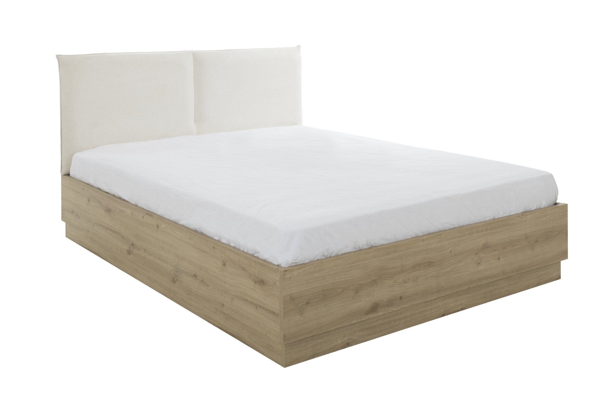 Découvrez le lit coffre Tidy de la collection Rivoli par GAMI, une pièce élégante et fonctionnelle pour votre chambre. Ce lit est conçu avec une structure en panneaux de particules revêtus d'un papier imitation chêne artisan, offrant une finition raffinée et durable. La tête de lit textile, montée sur un support en bois, ajoute une touche de confort et de style. Notez que le matelas n'est pas inclus.