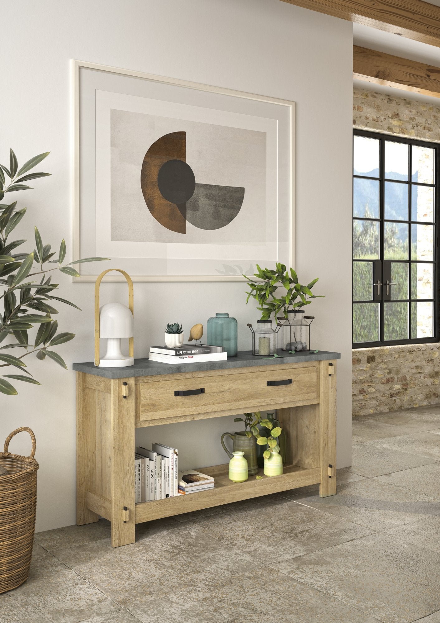 Découvrez la console BROCELIANDE 1 tiroir de la marque Gami, un meuble d'appoint élégant et fonctionnel qui s'intègre parfaitement dans votre entrée ou couloir. Fabriquée en France, cette console allie design et praticité avec des matériaux de haute qualité.