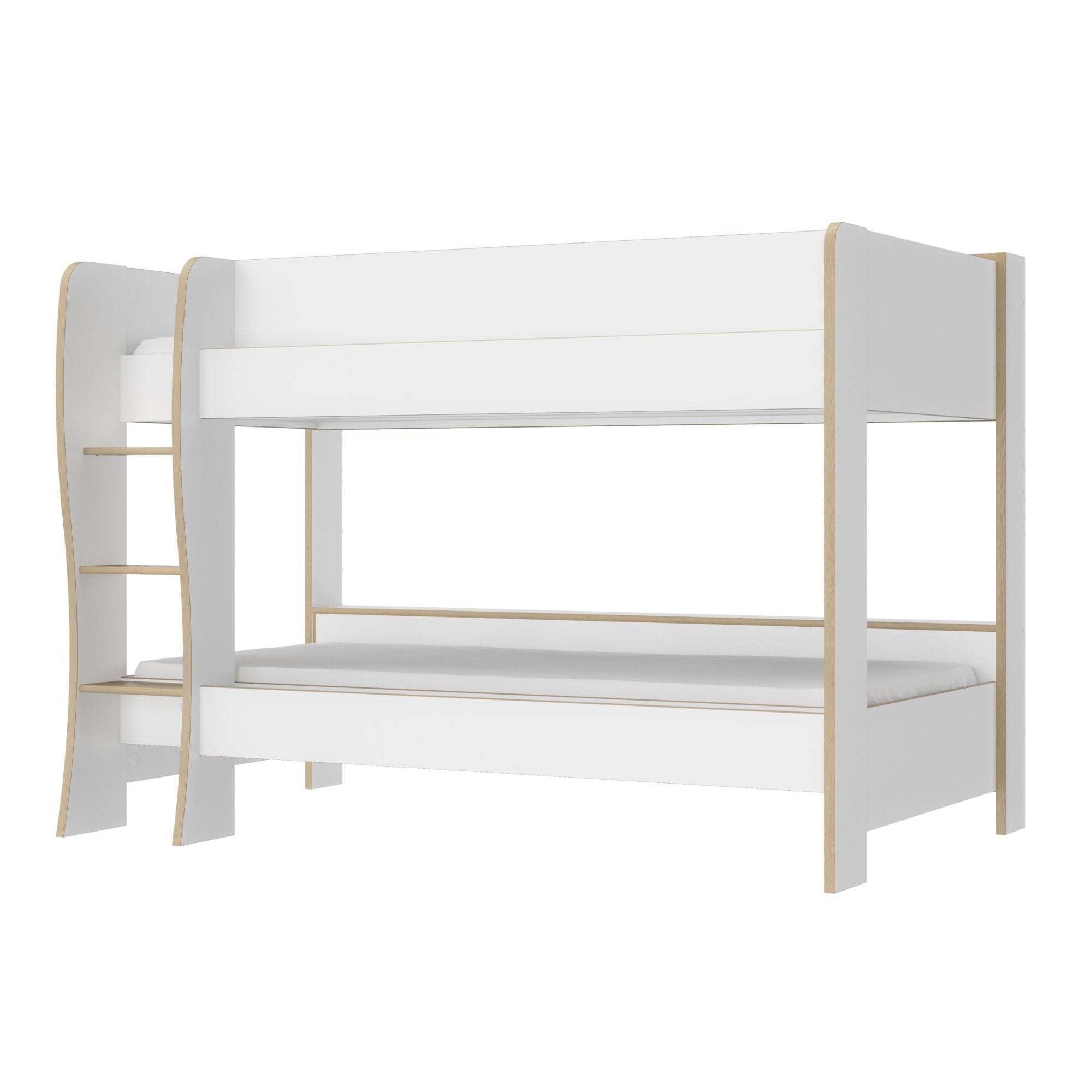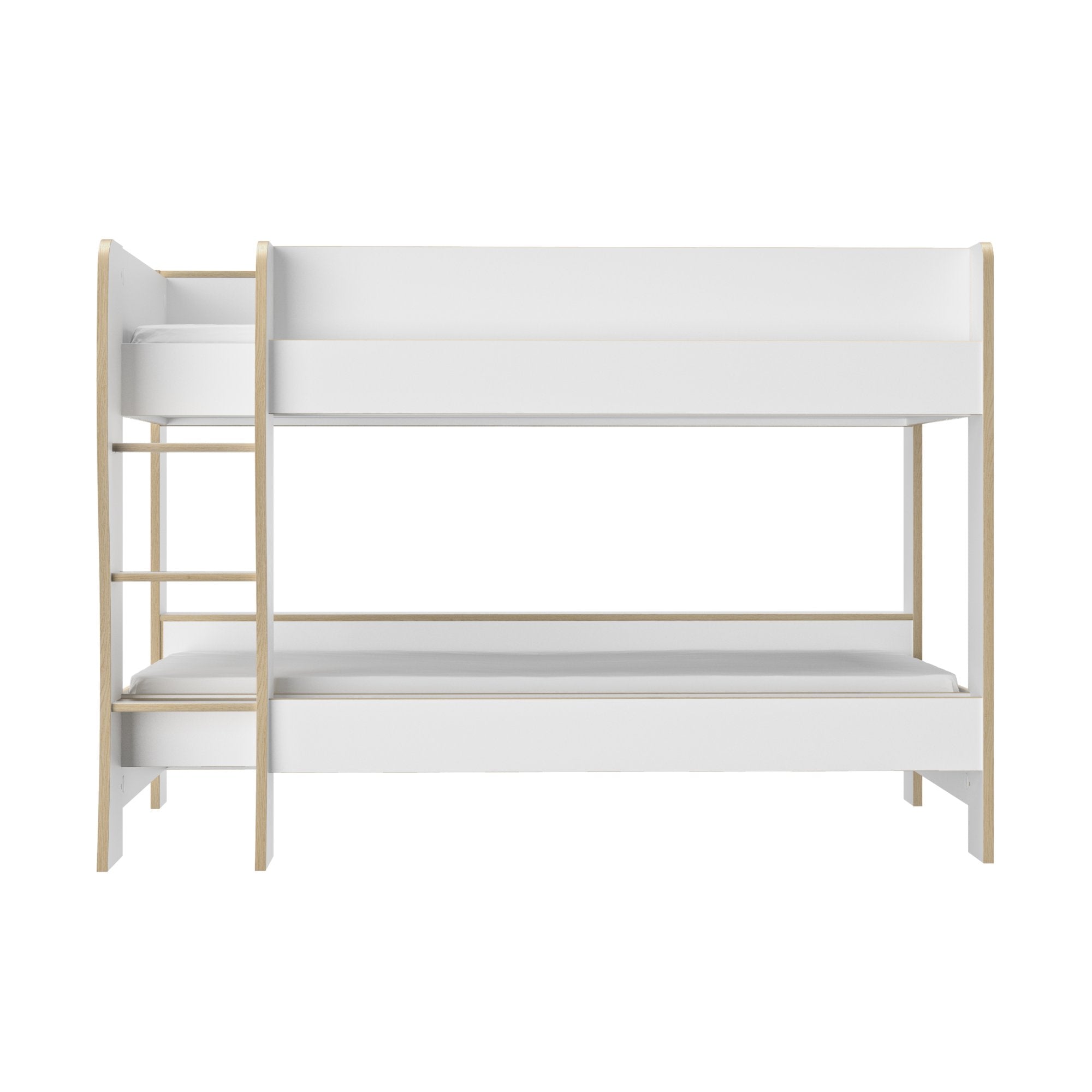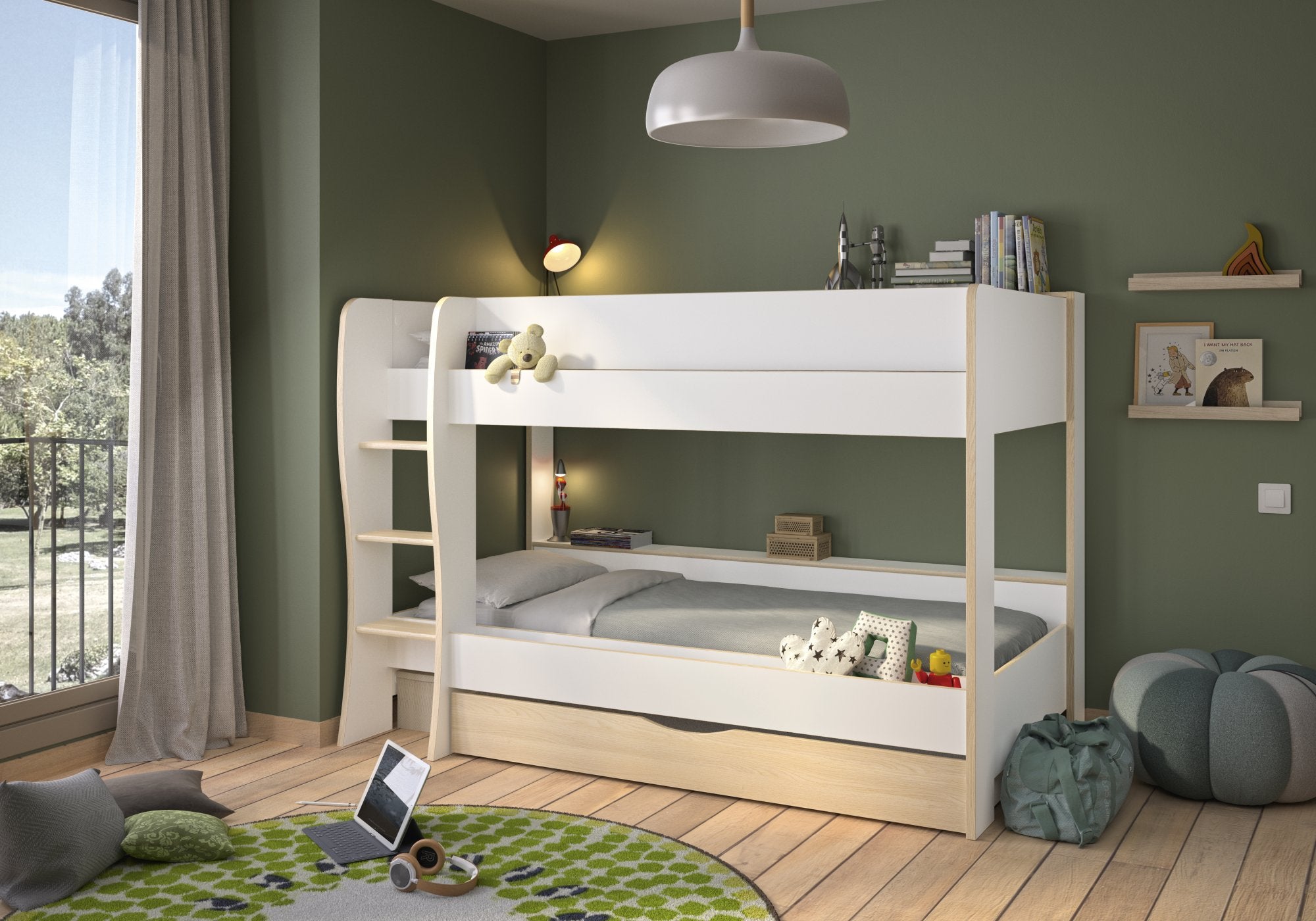 Découvrez les lits superposés ROOMY de la marque GAMI, une solution idéale pour optimiser l'espace dans votre chambre. Conçus pour des literies de 90 x 200 cm, ces lits offrent un design fonctionnel et moderne en bi-ton chêne clair et blanc. Veuillez noter que le matelas n'est pas inclus.