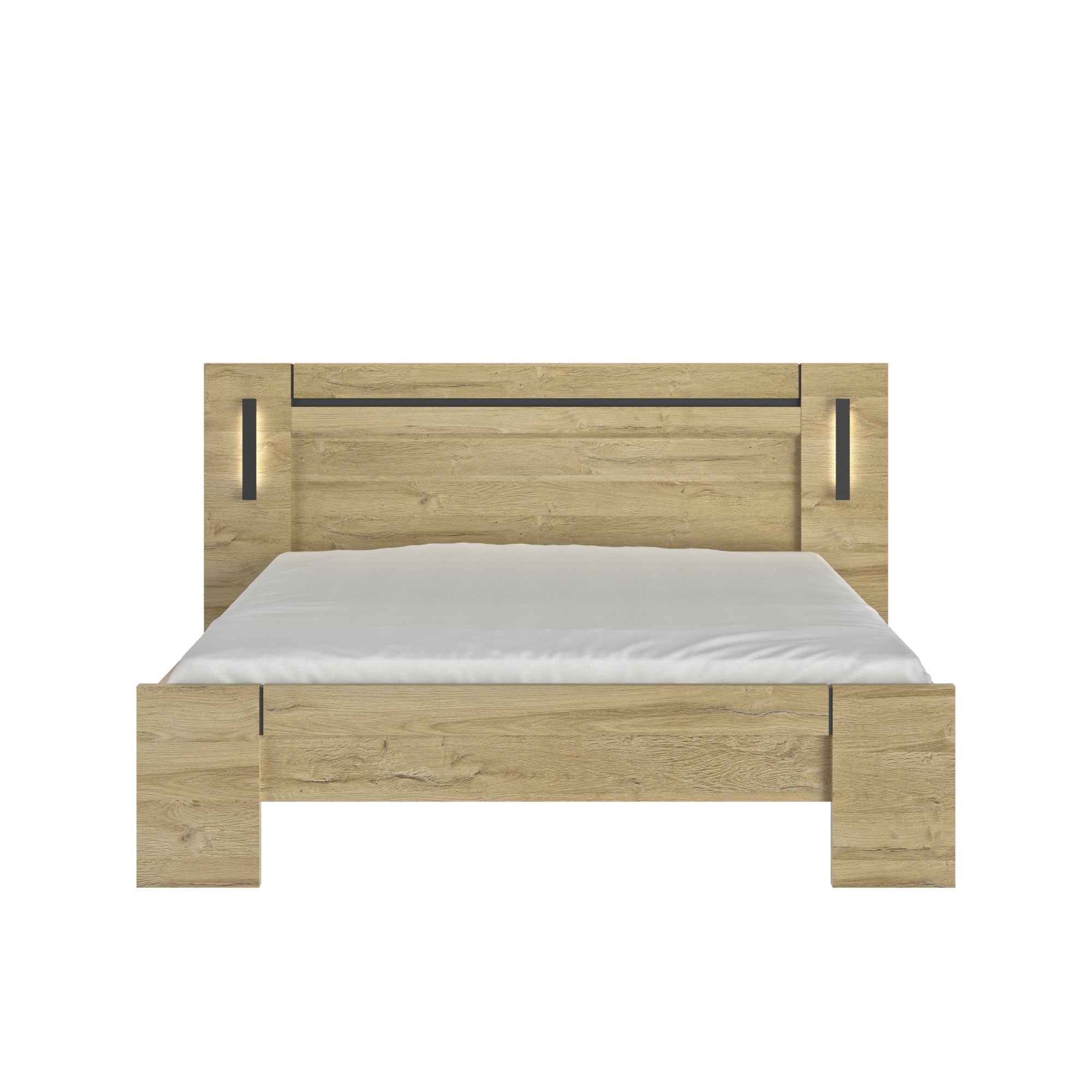 Découvrez le lit SOFIA 180 x 200 de la marque Gami, une pièce élégante et fonctionnelle pour votre chambre à coucher. Ce lit est conçu avec une attention particulière aux détails et à la qualité, offrant un design moderne et raffiné en chêne doré et beige. Veuillez noter que le sommier et le matelas ne sont pas inclus.