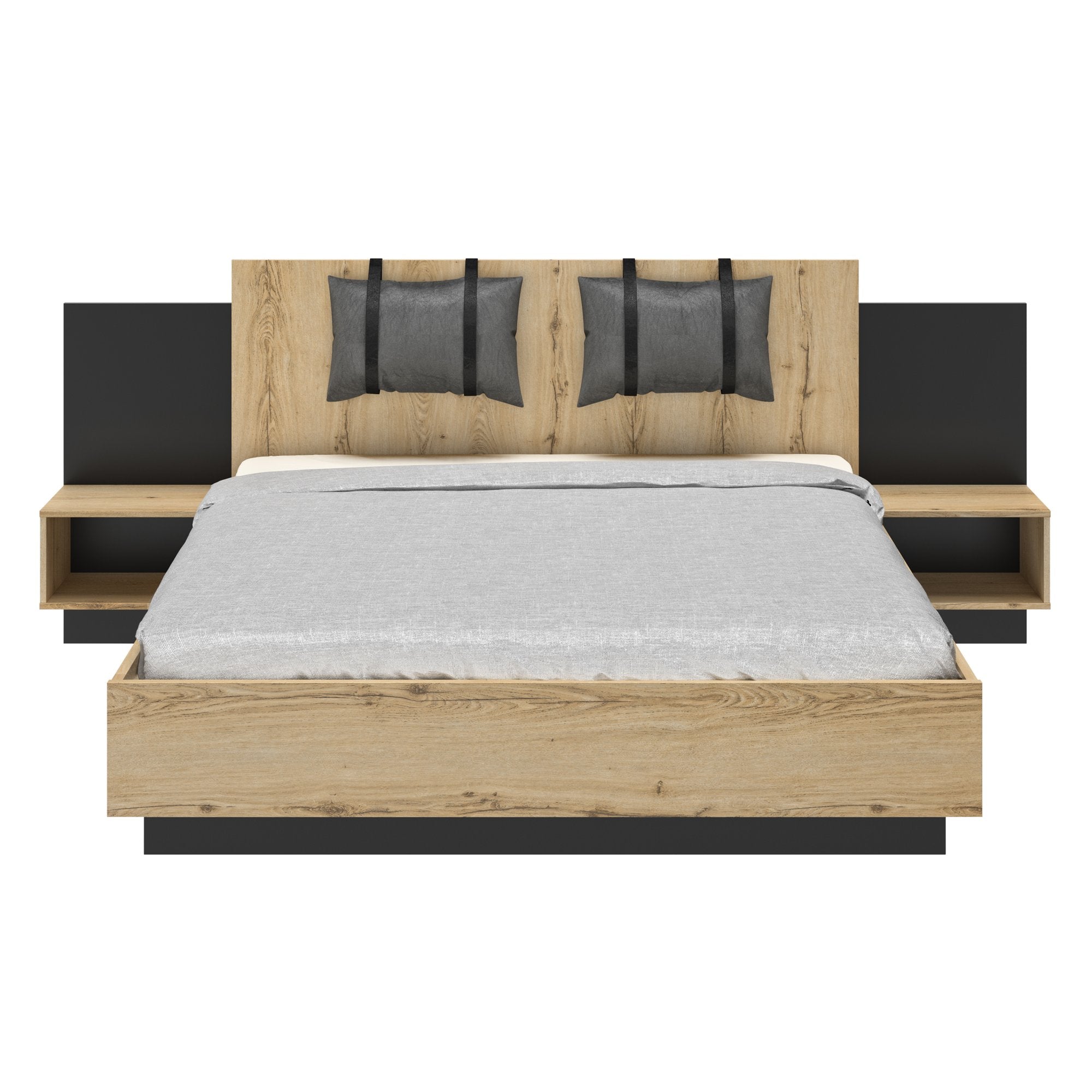 - Coloris très chaleureux, avec sa grande tête de lit coloris chêne