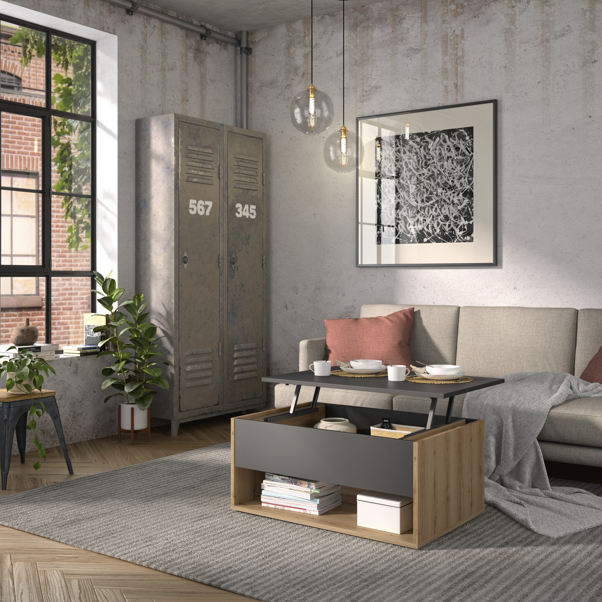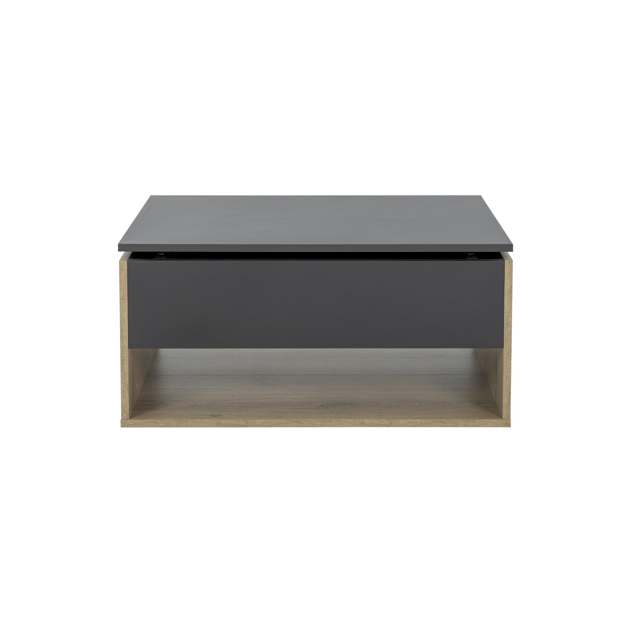 Découvrez la table basse URBAN de la marque Diagone, une pièce maîtresse pour votre salon moderne. Sa structure est composée de panneaux de particules recouverts de papier imitation Chêne Helvezia et de mélamine anthracite sablée, avec des chants aux mêmes finitions, certains en ABS de 1mm. Cette table est équipée d'un mécanisme relevable, offrant une fonctionnalité optimale pour vos moments de détente ou de télétravail.