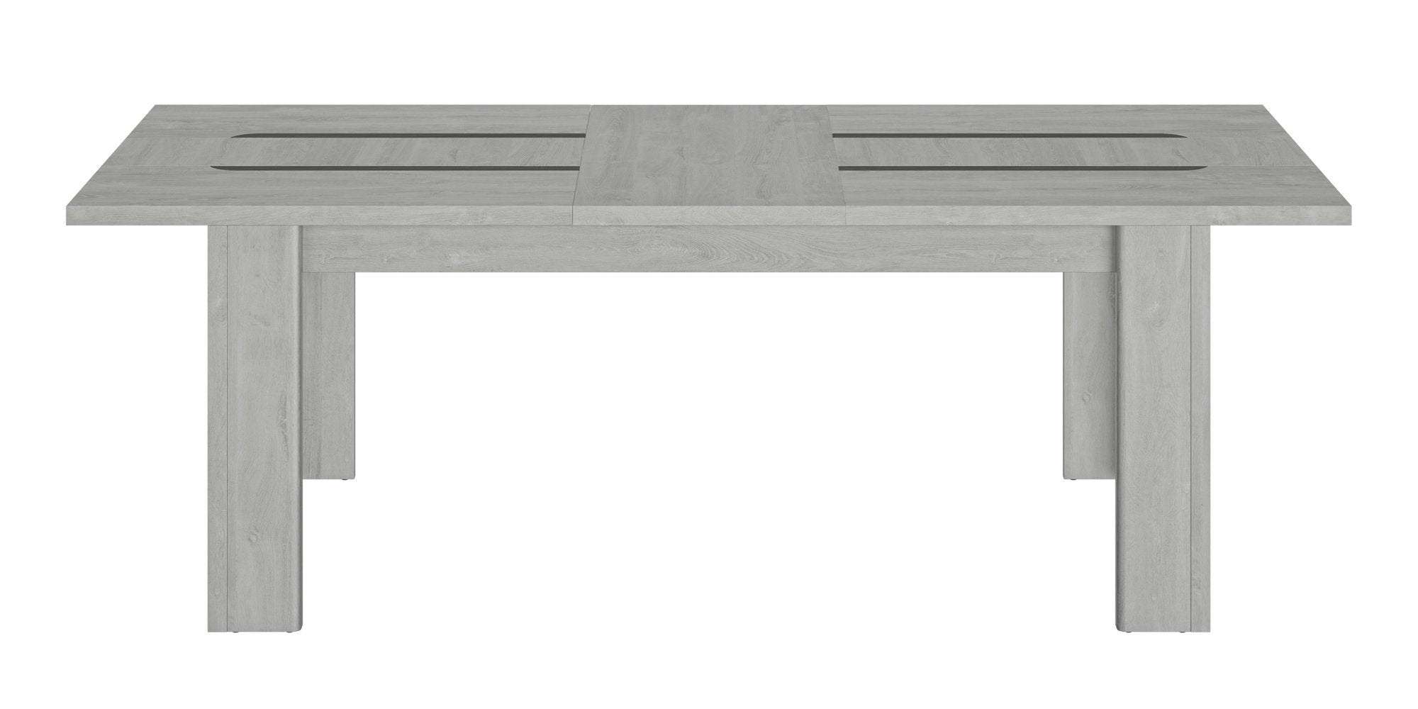 - L'allonge centrale se range sous le plateau, plus besoin de ranger votre allonge dans le placard