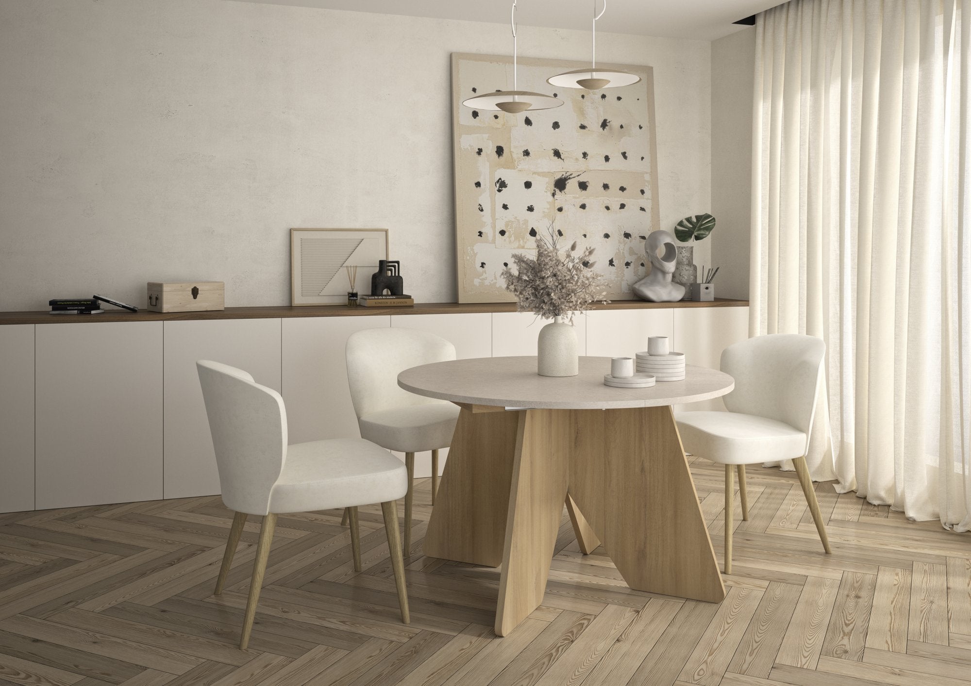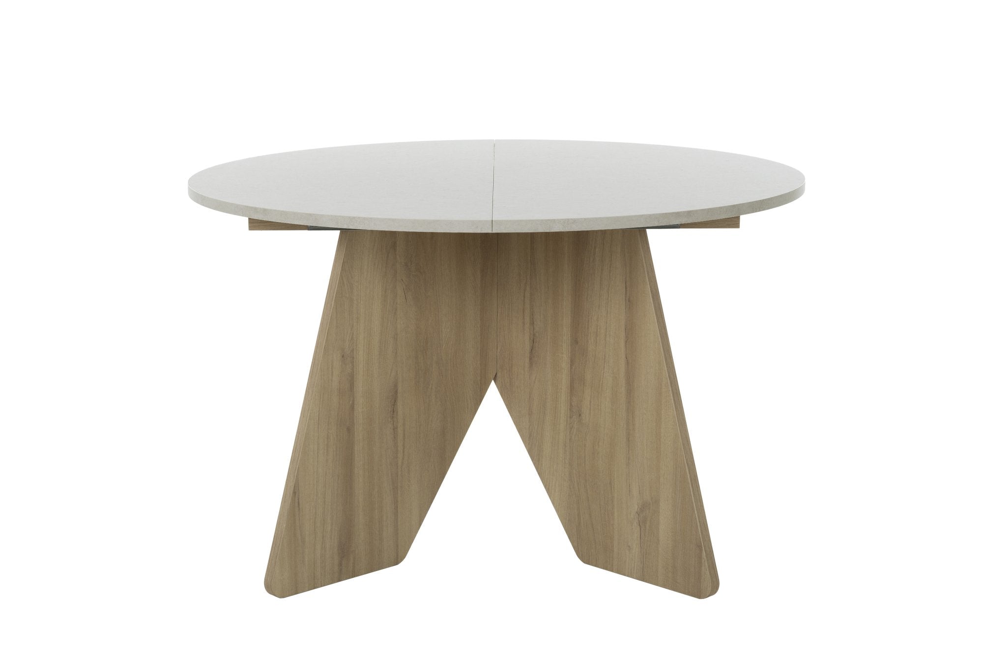 - Table ronde avec plateaux et allonge en mélamine d'épaisseur 22 mm, offrant une résistance parfaite au quotidien.
