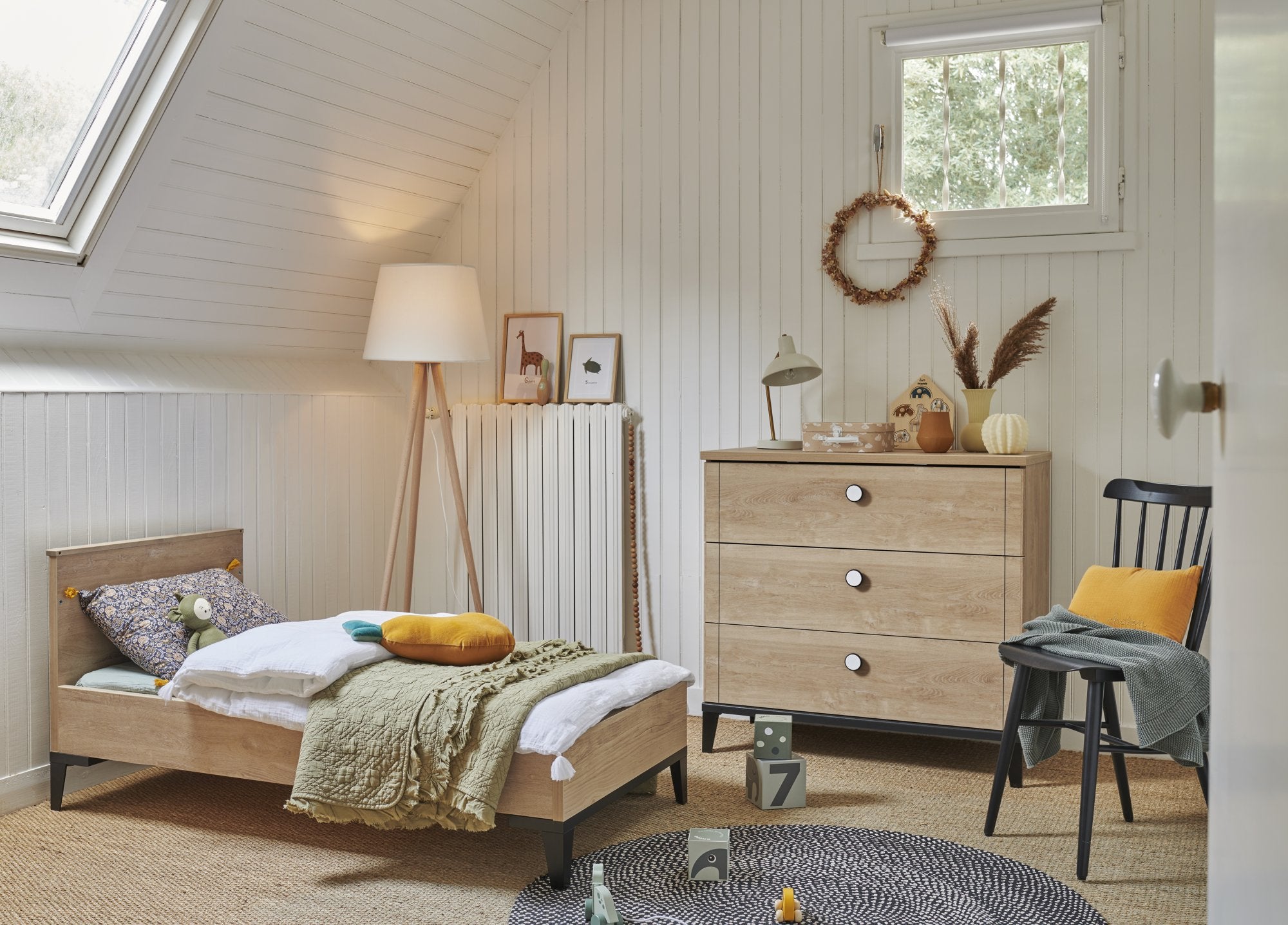 Découvrez la commode MARCEL en chêne blond et noir de la collection Galipette. Cette élégante commode à trois tiroirs est idéale pour la chambre de bébé, offrant à la fois style et fonctionnalité.