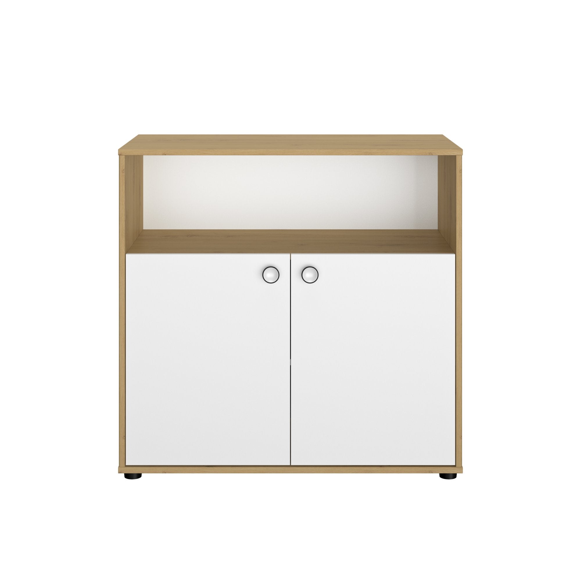 - Un joli trio de meubles aux décors chêne blond et blanc pour créer une ambiance douce et moderne.