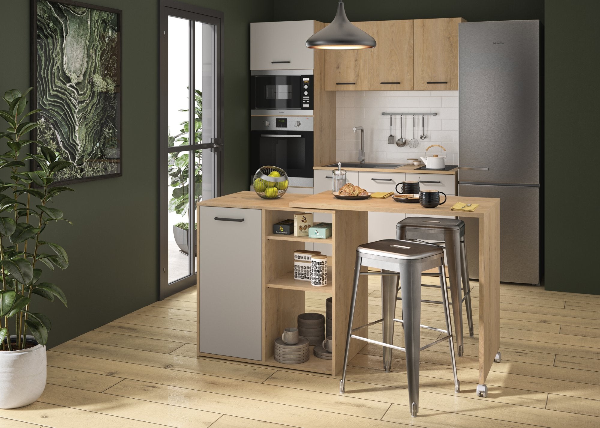 - Îlot pivotant entièrement en mélamine pour une durabilité optimale.